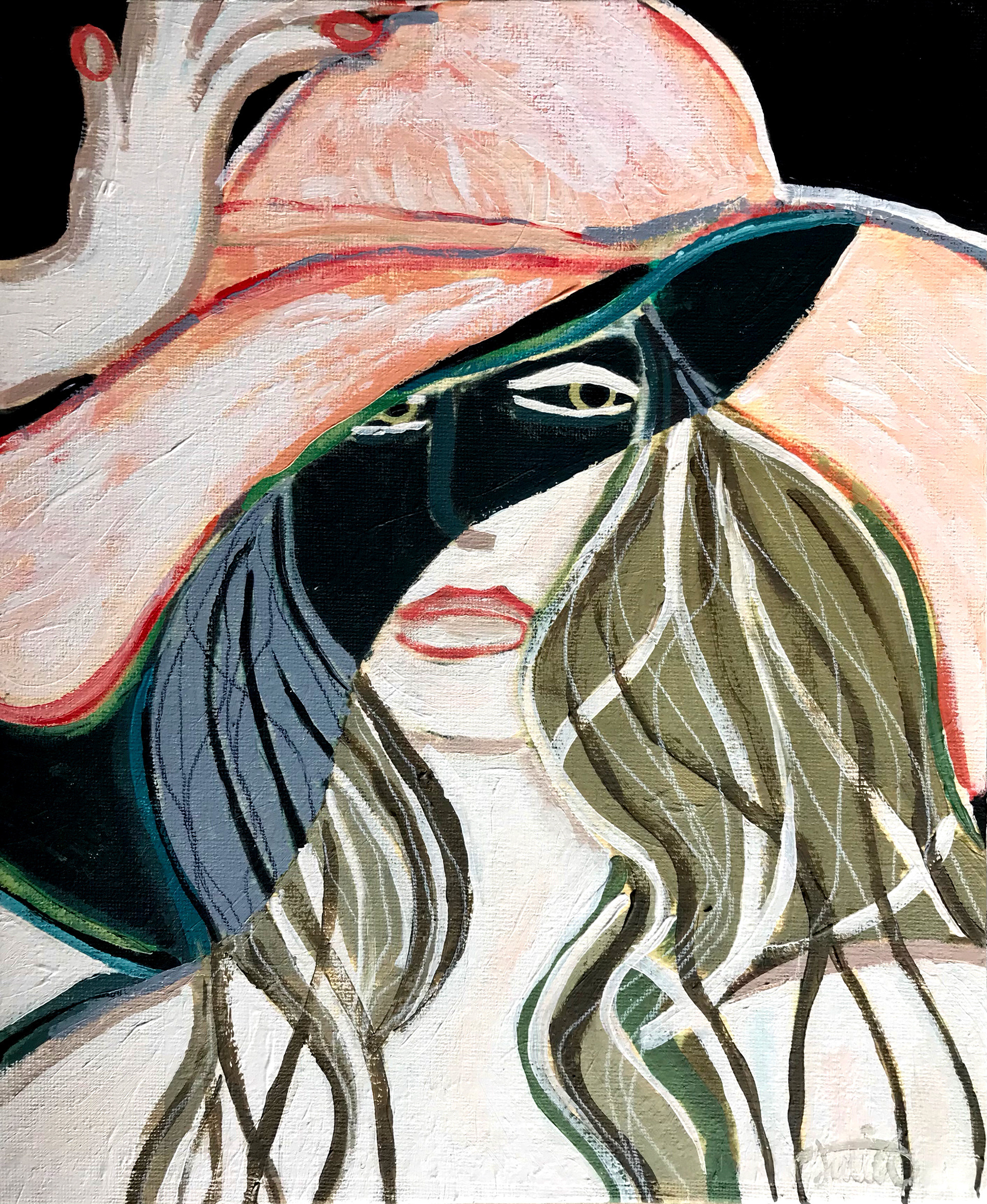 Keep It Under Your Hat, 31 x 25cm, acrylic & coloured pencil on canvas panel
